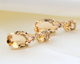 Two Stone Oval Cut Citrine Drop Earrings
