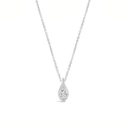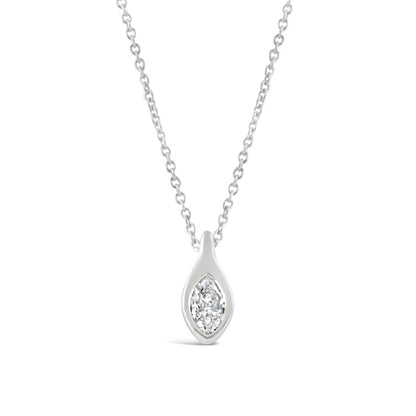 Crafted in 9ct white gold, this elegant pendant showcases a marquise cut diamond delicately cradled in a smooth bezel setting.