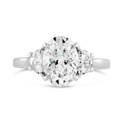 Oval & Half Moon Three Stone Engagement Ring 3.82ct
